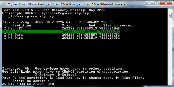 TestDisk found three MSData partitions.