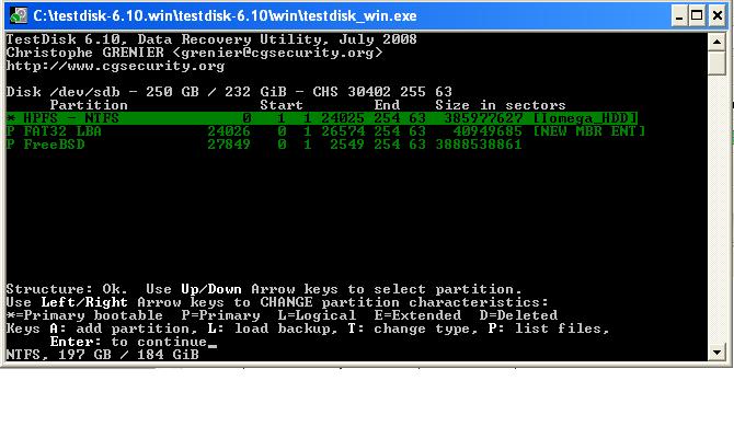 You see, originally I could only see the partitions on the external HDD that I had setup on it a while back from my boot manager & partitioning software (BootIt Ng), and not from either XP or Ubuntu (which I have setup in a multiboot on my computer), or Win 7 on another computer. I wished to solve this problem by using Testdisk from Ubuntu, so I booted into Ubuntu, opened up the Terminal, and started up Testdisk. Selected "Create a new log file", selected my USB hard drive, hit Proceed, and on the next screen, selected "Intel/PC partition", and then hit "Analyze" to search for lost partitions. Once it was done (and yes, it did locate the three partitions on there, which previously it wasn't seeing), I figured that probably wouldn't be enough for the OSes to see the partitions, and access their filesystems, so I next exited back to the main menu, and selected the "[MBR Code]" option to write Testdisk MBR code to first sector of the hard drive, which said it completed successfully. So next I rebooted, hoping I would now be able to get into my partitions from my operating systems, but alas...now the problem is much worse!!