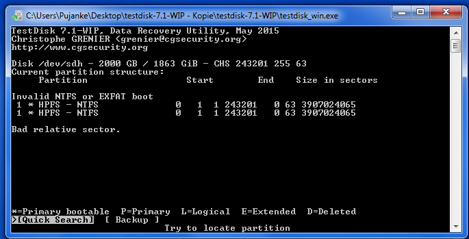 TestDisk benutzen um verlorene Partitionen wiederherzustellen
