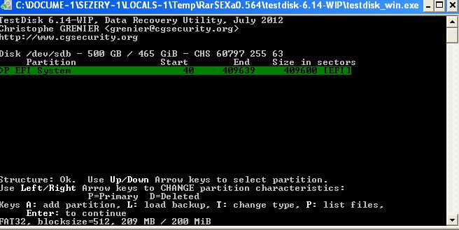 Wichtig ist, das die NTFS-Partition die Daten mit p drücken anzeigt.